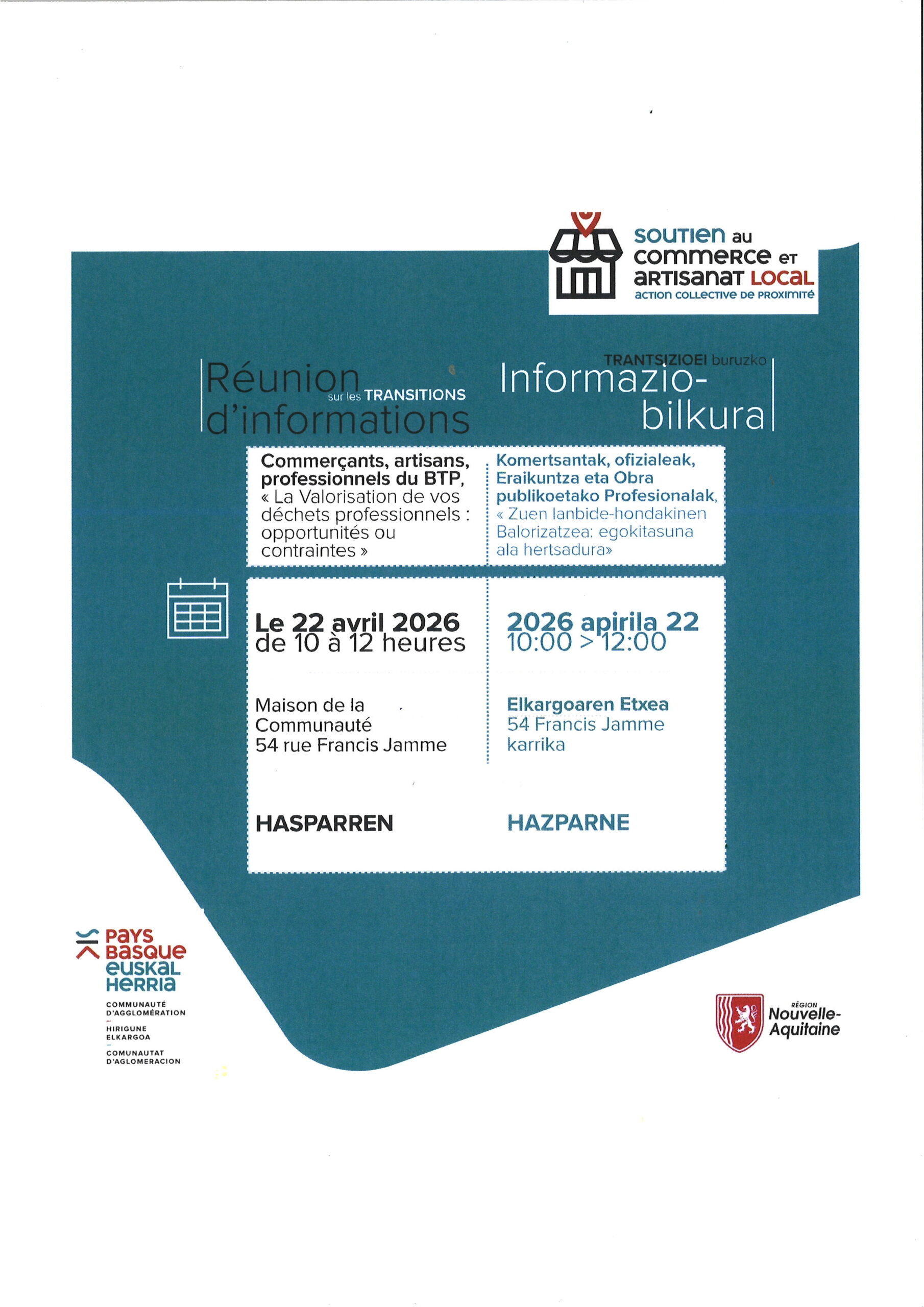 Apirila hasieran, bilketa gune berriak martxan ezarriko dira Hazparnealdean, hondakinen bilketa eraginkorragoa eta iraunkorragoa izan dadin. Hondakinen bilketa zerbitzuaren berrantolaketaren helburua lurperatutako hondakinen kopurua murriztea da eta konpostatzearen, birziklatzearen eta berrerabilpenaren bidez hondakinak balorizatzea. 2026ko martxoaren 30etik goiti, AIHERRA, BASTIDA, LEKORNE, LEKUINE eta MAKEAko hondakinen bilketa herrian zehar antolatu biltoki berrietan eginen da. Etxeko […]